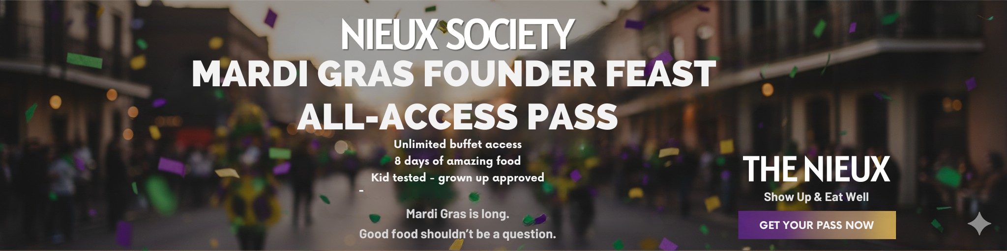 This pass gives you all-you-can-eat access for all 8 days of parades at The Nieux