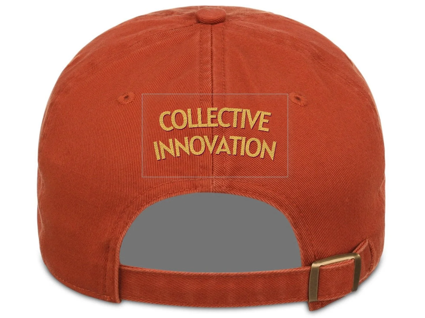 Bold ideas deserve bold colors. The Innovation Hat blends deep orange for creativity, gold for brilliance, and burgundy for depth — a wearable reminder that the future belongs to those willing to create it.